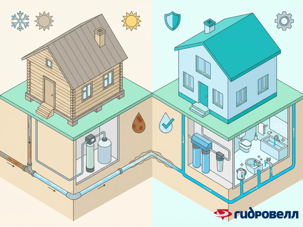 Поэтому система очистки воды для частного дома всегда подбирается с учетом режима проживания, характеристик насоса и места установки.
