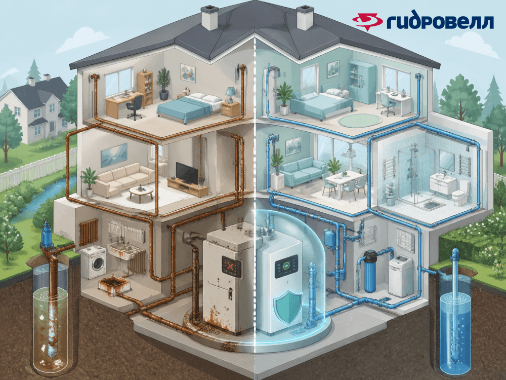 Пушкино активно застраивается современными коттеджами и таунхаусами. Почти в каждом втором проекте предусмотрена собственная скважина, а значит — индивидуальная водоподготовка. И здесь важно понимать: система — это не просто «пара фильтров», а инженерный узел, который напрямую влияет на ресурс котла, сантехники и комфорт всей семьи.